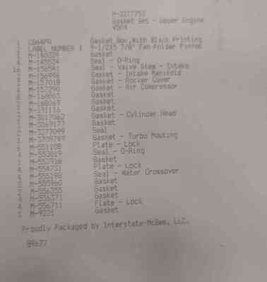 UPPER GASKET SET V504, WITH SEAL VALVES - JUEGO JUNTAS SUPERIOR